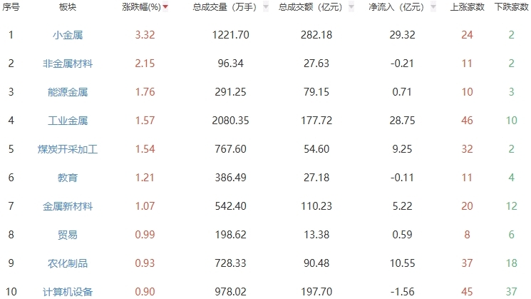 中国经济网络保留的所有权利 中国经济网络新媒体矩阵 在线音频 - 视觉节目许可证(0107190)(北京ICP040090) 中国经济网络北京7月18日新闻今天早上三个主要指数上升并下降,几乎没有增加。随着今天中午的市场关闭,上海综合指数为3528.90点,高达0.34%;深圳组件指数为10905.91点,高达0.30%; Chinext指数为2275.26点,高达0.26%。在领域,小金属,非金属材料,能源金属和其他领域的领域方面,黑色家用电器,饮酒,游戏和其他领域排名最高。 A股市场部门的增加和崩溃的排名 (负责编辑:XIN) NET向中国发表的声明:股票市场源于媒体合作社和机构,以及该集合的个人意见,仅针对投资者而不发展服装建议。投资者在此基础上以自己的风险行事。