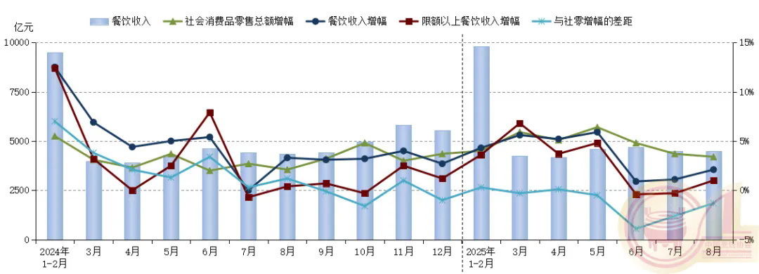 国家统计局于9月15日发布的最新数据显示,2025年8月,全国餐饮收入为4496亿元人民币,增长了2.1%;超过限制的单位的餐饮收入为1352亿元人民币,增长了1.0%。从2025年1月到2025年8月,全国餐饮收入为3648亿元人民币,同比增长3.6%;超过限制的单位的餐饮收入为100689亿元人民币,同比增长2.8%。根据中国美食协会的数据,八月份,全国餐饮收入的增长率增加了1%的月份点,而餐饮收入有限收入的增长率则增加了1.3%到月至月的点。国家收入在消费零售总销售总额中的比例销售额为11.3%。自2024年以来,全国餐饮收入和每月同比增长。资料来源:中国烹饪协会根据国家统计局的数据收集和制作。假日餐饮度假消费的热门话题:1。秋天开始时“在秋季体重”。八月是秋天的开始,“秋季秋天”和“秋天”的习俗在中国北部和其他地方。餐饮商已经推出了一系列菜肴,例如在Ziguang花园中的“秋季瓜”,Chen Jishunhe的牛肉骨骼冬季瓜杯,“砂锅四种珍宝”,Qixintian的新鲜船只和螃蟹价值等。除了传统的“秋季秋天的伊拉吉斯”外,饮料公司还通过现代营销(例如推出新产品,共同品牌和发展外围设备)实现了新的销售。新的茉莉牛奶白色产品CT“ Autumn One Cup”售出32万杯;大蒜茶的销售额增加了200%的月份;销售销售Naxue增加了500%;每天400次命令,50%的商店每天在中国日8月有超过300次列出订单。数据表明,“中国情人的餐厅”搜索量增加了240%的月份,而用餐预订订单的数量也增加了52%。 Xibei的“接吻和折扣节”是中国情人节的经典活动。这种折扣的独特方法不仅增加了节日的满足感,而且还提供了有机会向公众表达爱的配偶,亲戚,朋友。 Domino Pizza推出了Qixi Festival的“长期爱情”包,大蒜茶女孩推出了Qixi Festival Limited“ Phoenix Flying”主题套餐,这引起了消费者的情感共鸣。餐饮标记的创新发展等。 8月,新的餐饮格式,新型号和新情况正在延续其,“太阳季节性菜肴”和“浪漫经济”赋予了餐饮消费市场的能力。从产品变化到场景创建,从现场接触到文化增强,中国传统的庆祝活动已成为餐饮品牌与消费者建立情感联系的机会。为两个节日提供良好的服务保证。中后期节和全国假期即将到来。中国烹饪协会提醒餐饮公司专注于建立安全,食品安全,反巴苏拉等,并以诚信促进业务。与此同时,中国烹饪协会促进消费者在迎合消费方面积极地进行良好的环境。