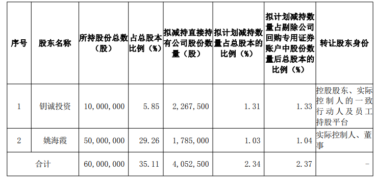中国经济网络北京,9月23日,洪加伊安全(300952.SZ)昨晚发布了公开公告的公告,内容涉及减少主要股东以及一些董事和一些高级管理董事的股份。该公司最近收到了Yucheng Investment及其董事Yao Haixia发布的“共享共享计划的通知”。 Hunghui安全控制器和实际控制器Yao Haixia,实际上是控制者Wang Xianhua,实际上控制了Wang Peng和Nantong Yucheng Equity Investment Center(Limited Partnership)(因此,从称为“ Yacheng Investment”)是联合演员。上述人员严格遵守相关儿童,法规,规范文件和监管要求的规定,以实施减少共享计划。 Yaocheng Investment是一架雇用的飞机EE股票在公司首次公开募股之前为小型雇员建立,持有10,000,000公司共享(不包括特殊安全帐户的数量,占公司总资本总资本总资本的5.85%)。从公告披露的3个月内(即2025年10月22日至2026年1月21日)在3个月内通过集中投标或交易的公司股票的总降低是基于公司的个人资本(占共享总资本的总资本的1.31%,占特殊安全账目的账目账目的共享。该扣除额度是基于个人扣除的公司的资本。在公告披露之日之后的3个月内(即2025年10月22日至2026年1月21日),股票通过集中投标或大型交易的股票不超过1,785,000股,占总股本的1.03%(占总股票的1.04%的1.03%)公司的总股本排除了特殊证券重新购买帐户中的股份数量)。计划减少其持股的上述股东是共同的行为者。在计划公告的披露日期之后的3个月内,在交易后的15天内,连续90天,通过集中竞标减少的股票总数不超过公司股票总数的1%,也就是说,不超过1,708,850股;在连续90天的自然日内,通过整体交易通过集成减少的股票总数不超过公司股票总数的2%,即不超过3,417,701股。如果公司共享更改,例如共享奖金和变化资本基金以增加资本来实施减少计划,则建议减少建议的股票数量。 Yaocheng Investment和Yao Haixia计划减少T继承人持有量的总分配不得超过40.525亿。基于9月22日汉格·安全(Henghui Security)32.93人民币的收盘价,估计的手柄现金减少额不超过1.33448亿元人民币。 Hunghui Security于2021年3月11日在深圳Stockexchange Gem中列出,发行了362.32万股股票,发行价格为11.72元。赞助商是Huatai United Securities Co,Ltd和赞助商Li Zonggui和Ding Lubin。 Hunghui Sepurity筹集的资金总额为4.25亿元(42463900,000元),在降低释放成本后,筹集的净资金为3.71亿元(3.713亿元(3.713亿元)。最终的Henghui Security净筹款活动比原始计划低1.88亿元。该公司的招股说明书计划筹集5.6亿元,用于升级自动化和扩大性能安全保护手套,开发项目和新的Ultra-Hibl的应用Ary材料和安全保护用品和技术研发中心,银行贷款和资本补充剂的减少。该公司的发布清单为532.5万元人民币,赞助商Huatai United Securities获得了3350万元人民币的承保赞助费。亨格(Henghui)安全的股价在其榜单的第一天达到65.90元,历史上仍然是最高的。 Henghui安全的特别报告关于2025年半年度期间筹集的资金的储存和使用表明,随着“中国证券监管机构批准的审批江苏·亨格·赫格斯安全公司(Jiangsu Henghui Security Co)的未指定事项委员会的批准,安全性和不足的税费,资料率,资料率,纳税税[2024]税收,资料率。方法,信息披露和其他费用等。Hunghui的安全性在两次筹款中筹集了9.24639亿元人民币。